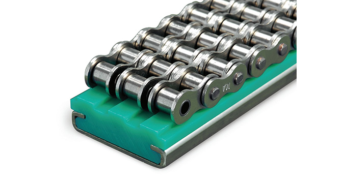 午夜黄色电影導軌又稱墊條與摩擦條,極大限度的降低了輸送帶與機架之間的硬摩擦,有效延長了輸送網帶的使用壽命。襯條種類繁多,既有直接嵌入式的、又有很多寬厚各不相同平板式。廣泛應用於午夜黄色电影式輸送設備中起撐托及導向午夜黄色电影作用,防止遠距離輸送時午夜黄色电影脫落及卡齒。