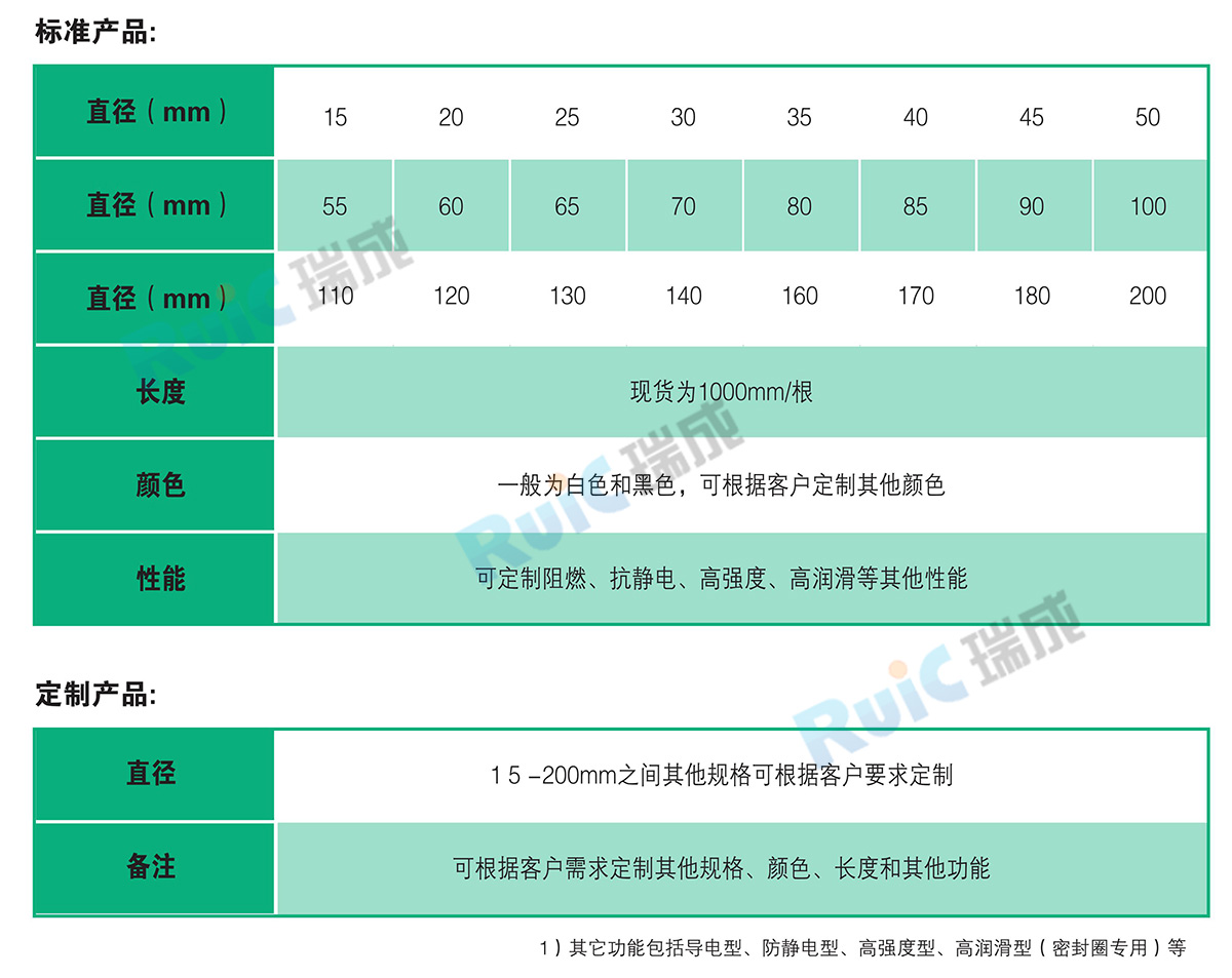 我司生產的超高棒材具有極好的耐磨性.良好的耐低溫衝擊性、自潤滑性、無毒、耐水、耐化學藥品。機械性能極高.具有突出的抗衝擊性、耐應力開裂性、耐高溫蠕變性、低摩擦係數、自潤滑性,卓越的耐化學腐蝕性、抗疲勞性、噪音阻尼性、耐核輻射性等,可以代替碳鋼、不鏽鋼、青銅等材料用於紡織、造紙、食品機械、運輸、醫療、煤礦、化工等行業。