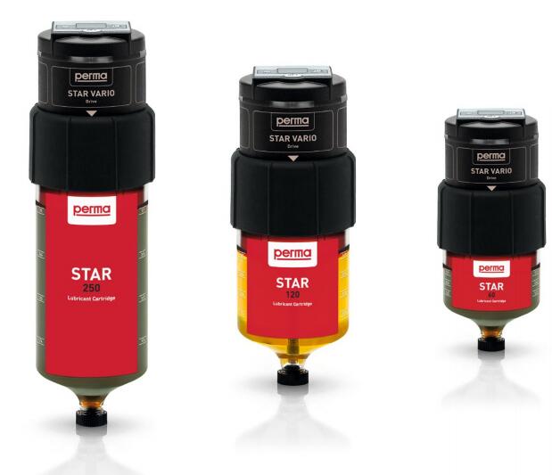 perma STAR VARIO 可用於滾柱和滑動軸承、滑動導軌、開式齒輪、齒輪架、絲杠、軸密封圈和午夜黄色电影的單點潤滑。由於潤滑油計 量精確,perma STAR VARIO 非常適合用指定的潤滑油量 來潤滑電動機。perma STAR VARIO 防塵和防水噴射,取決於 各個部 件的正確安裝 (IP 65)。