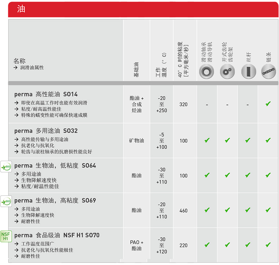 perma-tec 提供範圍廣泛、滿足各種要求的高品質潤滑油。建立了產品在不 同工業部門始終如一的高品質。 知名製造商為 perma 潤滑係統開發並生產專用潤滑油。所有潤滑油都在實驗 室條件下和實際應用中經測試,確保在 perma 潤滑係統中的最佳性能。